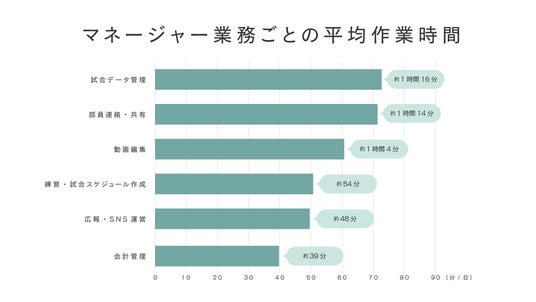 ✧マネージャー業務の内訳実態:試合データ管理や動画編集に1日に3~4時間以上費やす傾向