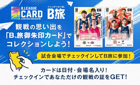 りそなグループ B.LEAGUEのサポーティングカンパニーとしてリーグの活動を支援する株式会社VOLZ(ヴォルツ、旧社名:株式会社Tixplus、本社:東京都渋谷区、代表取締役:池田宗多朗、以下VOLZ)は、公益社団法人ジャパン・プロフェッショナル・バスケットボールリーグ(B.LEAGUE)の公式デジタルトレーディングカードサービス『B.LEAGUE CARD』にて、位置情報を使用した「チェックイン機能」を新たに実装いたします。これに合わせて、B.LEAGUEの観戦企画「B.旅」と連動し、会場訪問の記念になる特別なデジタルカードがGETできる企画をスタートすることをお知らせいたします。