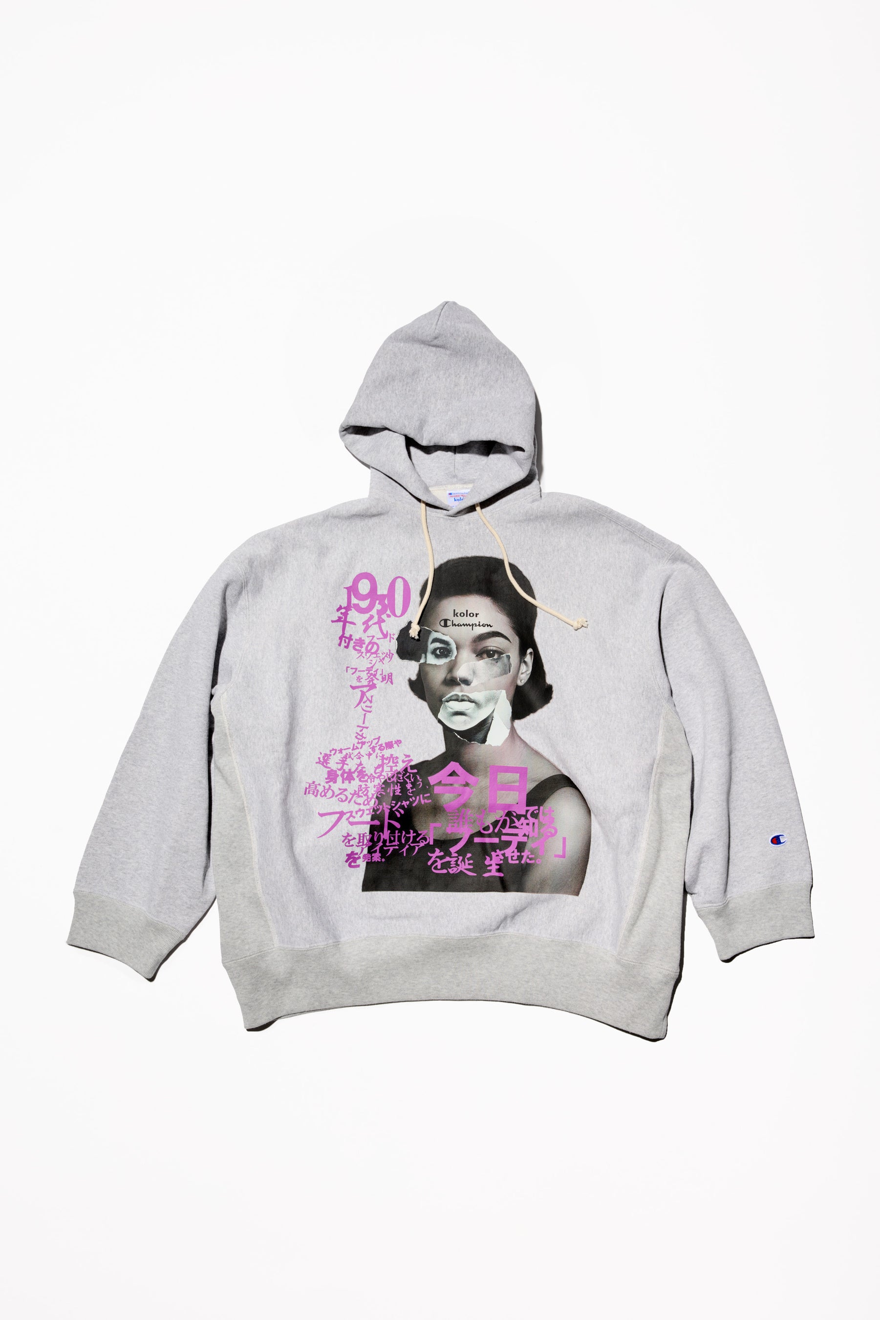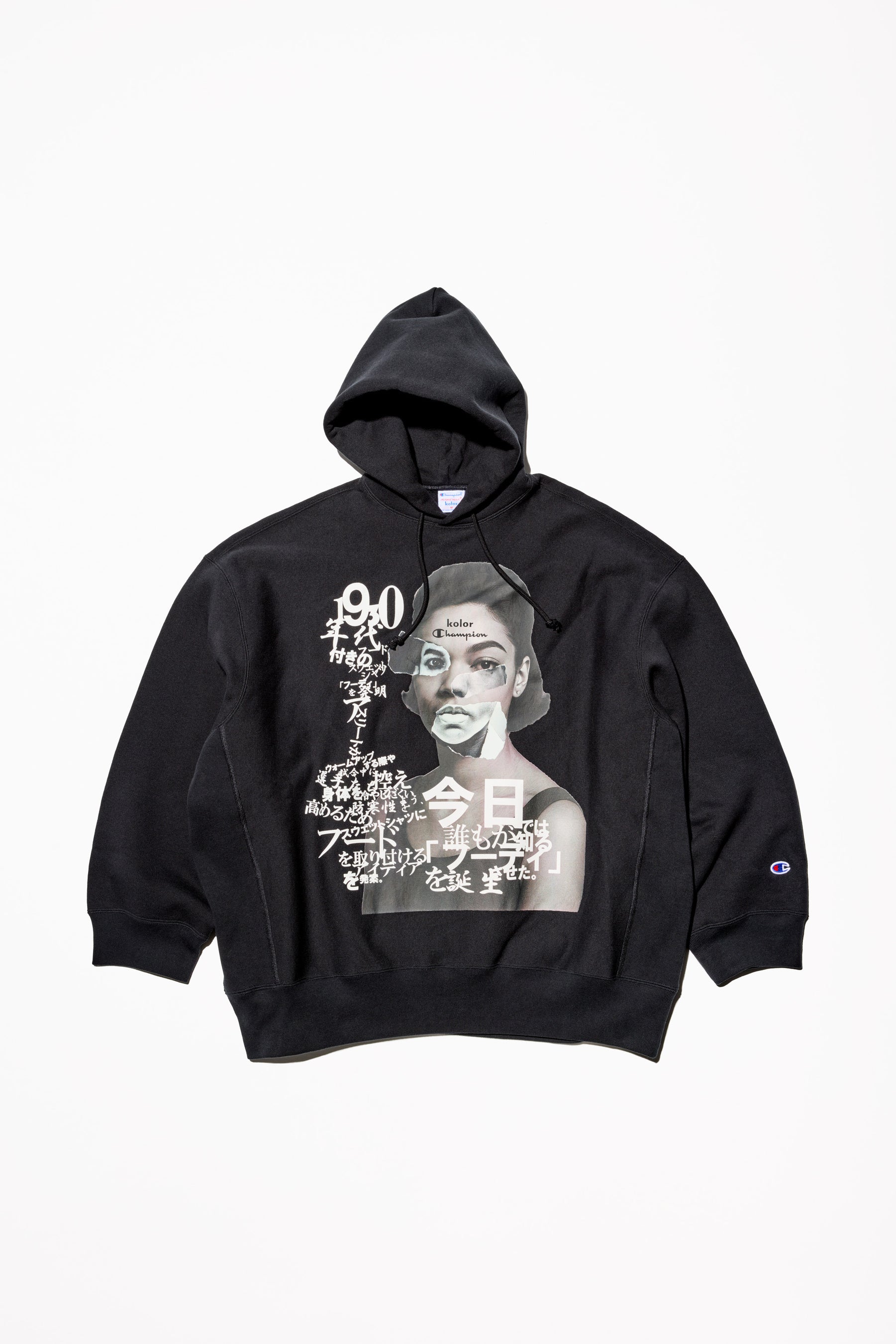 ブランドロゴは、kolorとChampion両ブランドのロゴを掛け合わせた遊び心あふれるオリジナ