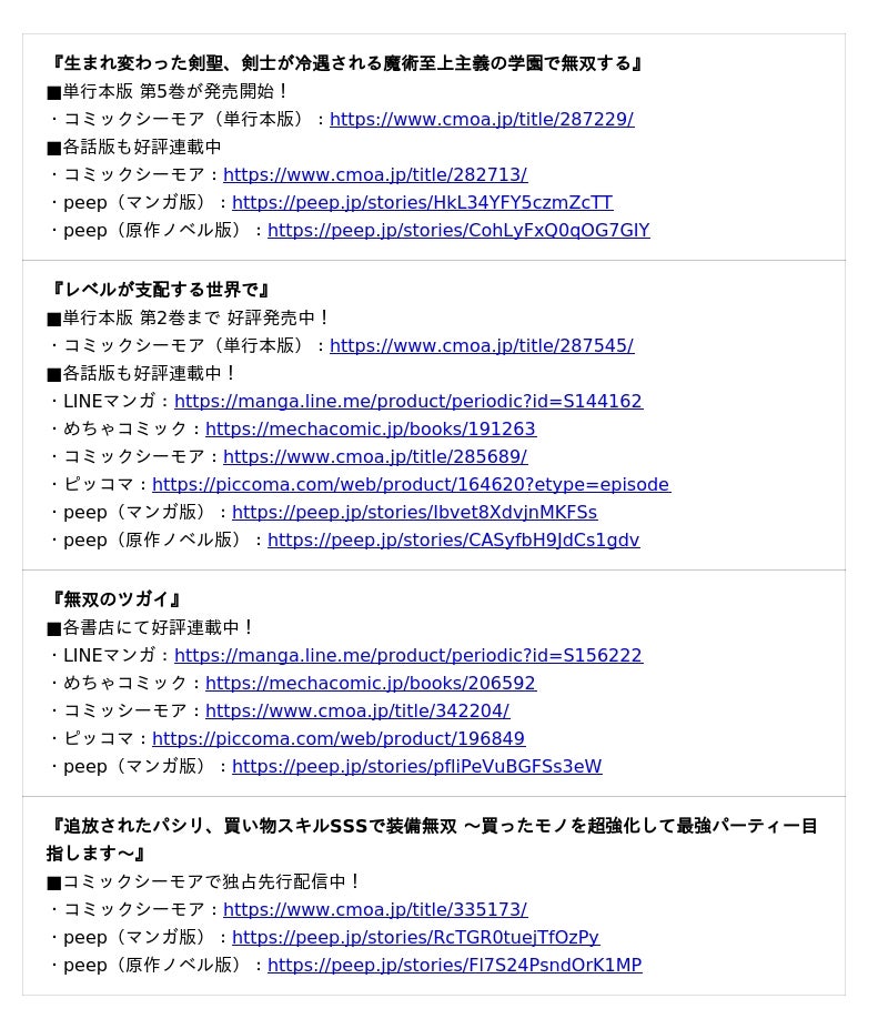 リリースから1年半で累計約50万部を販売した『生まれ変わった剣聖、剣士が冷遇される魔術至上主義の学園で無双する』や、めちゃコミック少年ランキング1位(※2025年4月24日時点App版)を獲得した『無双のツガイ』など、注目の作品が続々登場しています。