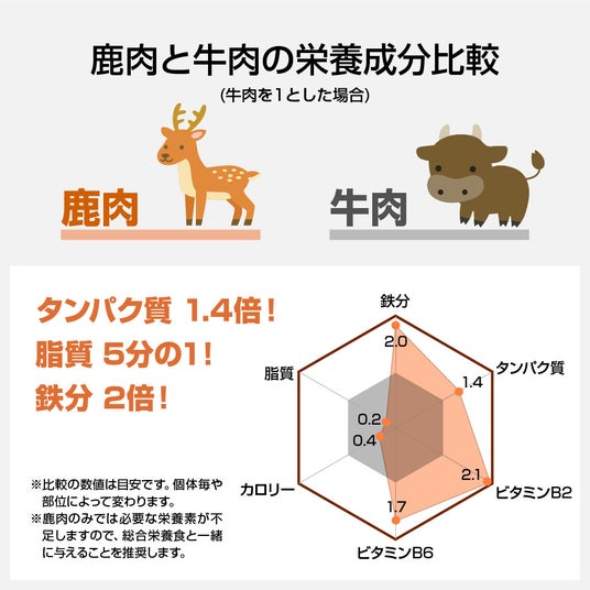 ・本能を刺激する“ジビエの香り”鹿肉は犬の祖先であるオオカミが野生で主食としていた「ジビエ」に分類され、