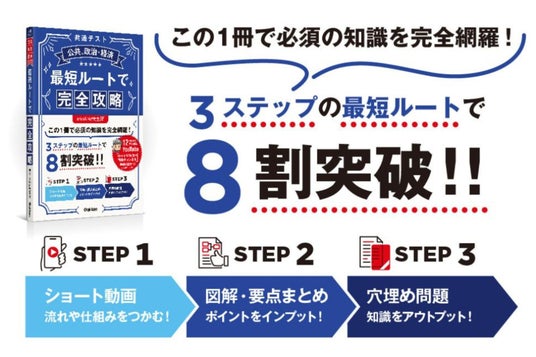 知識のインプットからアウトプットまでを最短ルートで導くために設計され、「公共、政治・経済」の全体像を把握し、自信を持って試験会場に向かえる実力と得点力を短期間で養成できます。