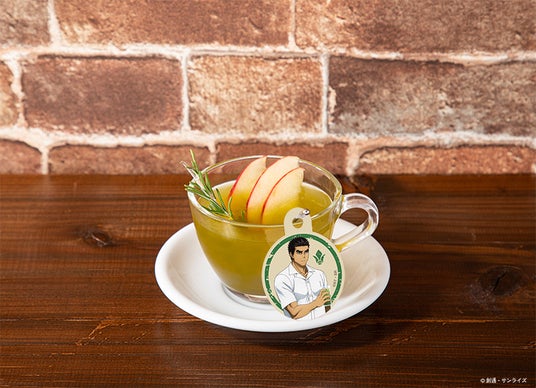 りんごとハーブをトッピングしたホットアップルグリーンティー。