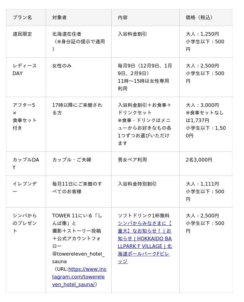 エスコンフィールドHOKKAIDO内・TOWER 11にある温浴施設「tower eleven onsen & sauna」では、毎年ご好評の冬季限定企画「WINTER SALE」を2026年も開催いたします。