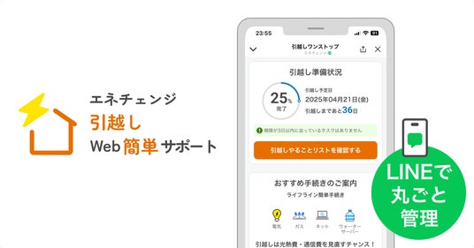ENECHANGE(エネチェンジ)株式会社(本社:東京都港区、代表取締役CEO:丸岡 智也)は、引越しに伴うタスク管理やライフライン(電気・ガス・水道など)の手続きをLINE上で完結できる新サービス「エネチェンジ 引越しWeb簡単サポート」を、2025年11月25日(火)より提供開始しました。