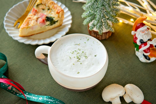 今SNSで注目の、カフェ気分を味わえる“カプチーノ仕立てスープ”を、ご自宅で手軽に。マッシュルーム、まいたけ、しめじの三種のきのこに玉ねぎと牛乳をあわせ、BRUNOオートクックポット&マルチスティックブレンダー2を使えば、なめらかなポタージュがあっという間に完成。