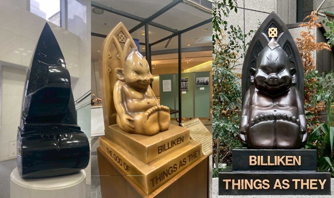 左:「コマビリケン」 中央「田村駒ビリケン像」 右「船場のビリケンさん」