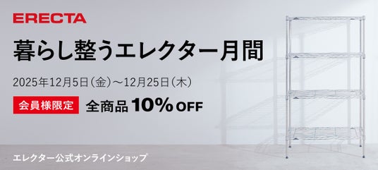 12月5日(金)~25日(木)は「暮らし整うエレクター月間」として、会員様限定で全商品が10%OFFに。整った空間で、新しい一年を迎える準備を。今の暮らしに、ちょうどいい収納を。