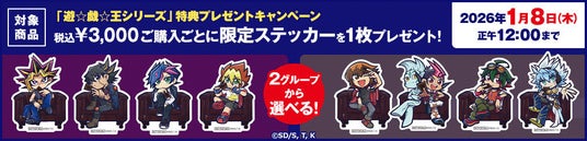 「遊☆戯☆王シリーズ」対象商品を3,000円(税込)ご購入ごとに【 限定ステッカー 】を1枚プレゼント。