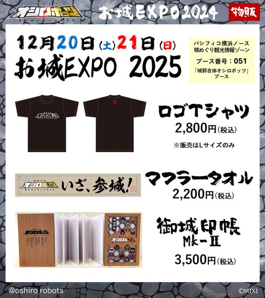 株式会社MIXI(東京都渋谷区、代表取締役社長 上級執行役員 CEO:木村 弘毅)は、MIXI_ANIMEオリジナルコンテンツ『城郭合体オシロボッツ』として、2025年12月20日(土)・21日(日)に神奈川県横浜市のパシフィコ横浜ノースなどで開催される「お城EXPO 2025」にブース出展することを決定しました。