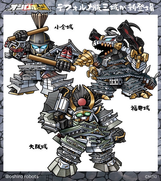 『城郭合体オシロボッツ』は、日本全国に存在する個性豊かで魅力的なお城を、“もしも実際のお城が巨大ロボットに変形&合体したら”という今まで無い新しい切り口で描くMIXI_ANIMEオリジナルコンテンツです。2022年12月に「熊本城」「高松城」「会津若松城」の3城のオシロボットと、3城が登場する大張正己監督によるショートアニメを発表しました。また、2023年3月、世界遺産・国宝「姫路城」の参城を皮切りに、「福山城」「名古屋城」「松本城」「岡山城」「備中松山城」「小田原城」「和歌山城」「津山城」「岸和田城」「島原城」「彦根城」のオシロボットを発表し、2025年には「広島城」「丸亀城」「五稜郭」「松江城」「大阪城」「小倉城」「福井城」を発表しました。今後も全国のお城からオシロボットが続々と誕生する予定です。