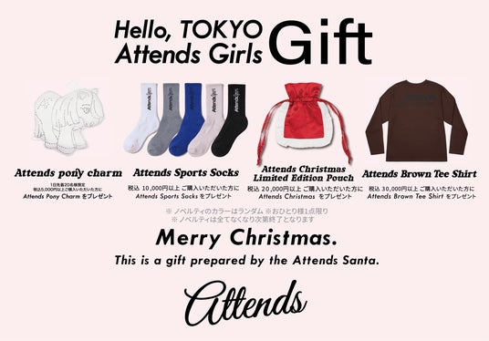 有名韓国アイドルが着用したことで話題のアイテムやFWの新作アイテム、さらに日本限定商品を初お披露目!クリスマスをAttendsの世界観で表したインテリアにも注目