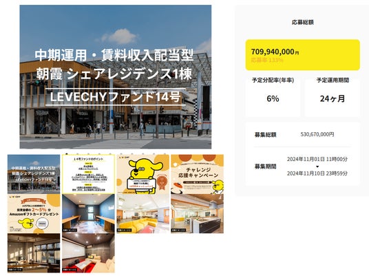 「LEVECHYファンド14号」は、24ヶ月の運用期間を想定しておりましたが、早期の売却が実現し、実際の運用期間は364日となりました。