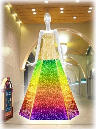 今年は、名鉄百貨店本店の営業終了前最後のクリスマス装飾となるため、過去のどのクリスマス装飾と比べても最大級の輝きを放つ、まばゆいドレスをまといます!また、装飾の大きな特徴として、昨年に引き続き体験型の演出が導入されます。今年は、設置されているジュークボックスで音楽を選ぶと曲が流れ、それに連動してナナちゃんのドレスの色や光り方が変化するというユニークな仕掛けが用意されています。