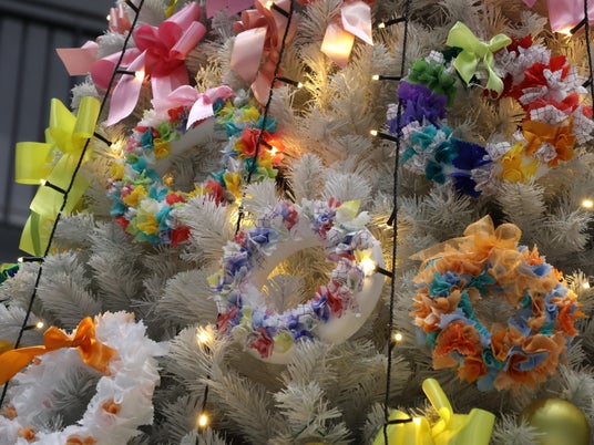 地域企業や空港事業者が不要な洋服の端切れを再利用して作成したクリスマスリー