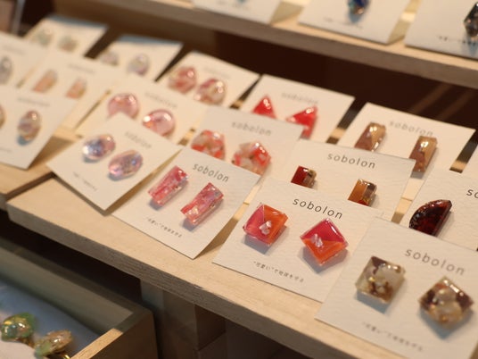 さらに、昨年に引き続き、今年もオーナメント製作ワークショップの協力事業者One Earth株式会社(sobolon)も出展し、海洋プラスチックごみを再利用して製作したジュエリーを販売しています。