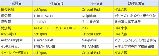 株式会社カプコン(以下、カプコン)が主催する、ゲーム制作コンペティション『CAPCOM GAMES COMPETITION』にて、専門学校HALの『octΩpus』が最優秀賞を受賞し、賞金500万円を獲得!加えて協賛企業賞として、AWS賞、タートル・ビーチ賞も受賞しました。また、『ATEA:THE LOST SEEKER』が特別賞を受賞しました。