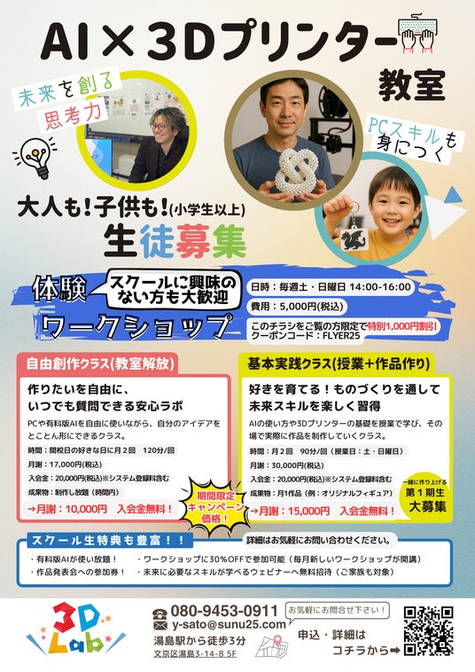 3DLabは、生成AIと3Dプリンターを融合させた楽しく学べるスクールです。