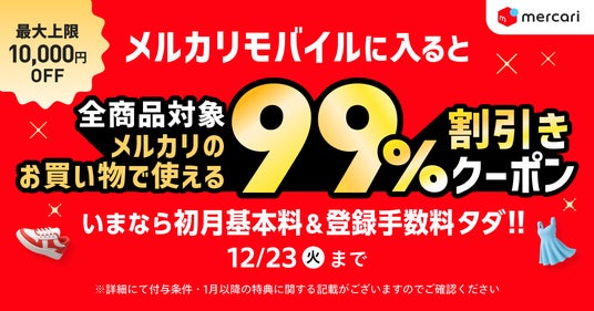 株式会社メルカリ(以下、メルカリ)は、2025年12月4日より、モバイルサービス「メルカリモバイル」において、同一名義で最大5回線までの契約が可能になったことをお知らせいたします(※1)。また、初めて「メルカリモバイル」に入ると、「メルカリ」で使える99%割引きクーポン(最大上限10,000円)と、全プラン初月無料特典がついてくるキャンペーン(※2)も12月23日まで実施中です。