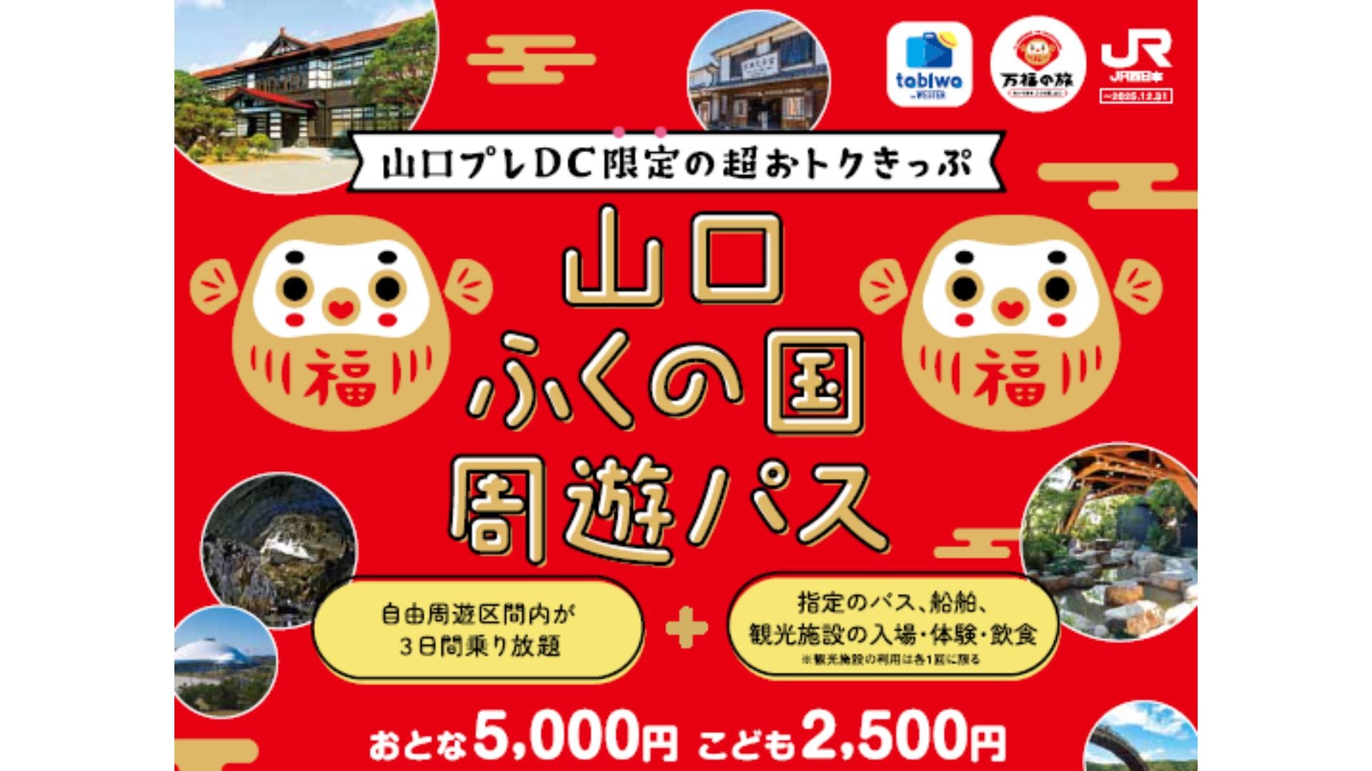 12月中は、山口県内を中心に利用できる「山口ふくの国周遊パス」の活用により、交通費や対象施設の利用が一段とお得になります。