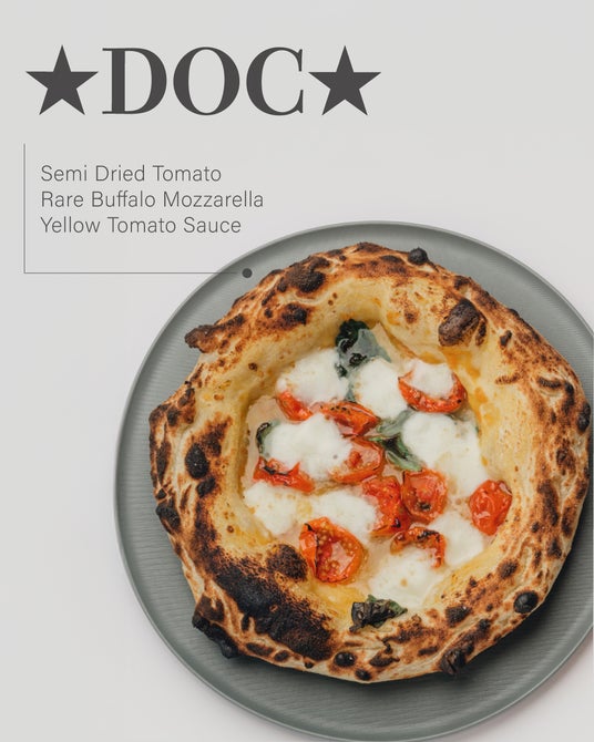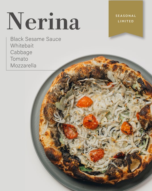 オープニングメニューは、岡山・東京店舗で大人気シグニチャーメニューの★FNT★をはじめとする定番4種類と、京都店限定を2種類、さらに季節限定メニュー2種の4種が加わり、合計8種類のピッツァをお愉しみいただけます。