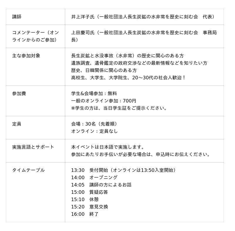 「私たちは歴史から何を学び、どう未来へつなげるのか? ─ 長生炭鉱の水没事故と市民の取り組みから考える日韓関係 ─」