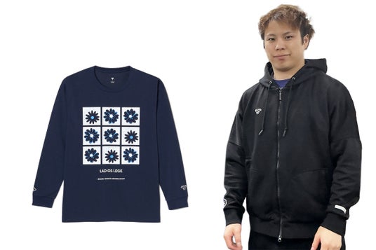 大阪ブルテオンのロゴが入ったスウェットジップジャケット(11,660円)と長袖Tシャツ(7,590円)を販売。税込5,000円以上購入すると、選手サイン入りユニフォームなどが当たるお楽しみ抽選会に参加できます。