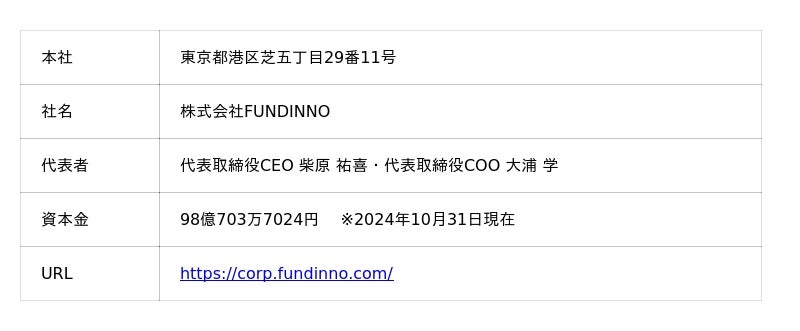 ITの力で、エアトリ旅行事業、ITオフショア開発事業、訪日旅行事業・Wi-Fiレンタル事業、メディア事業、投資事業(エアトリCVC)、地方創生事業、クラウド事業、マッチングプラットフォーム事業、CXOコミュニティ事業、HRコンサルティング事業、航空会社総代理店事業、レンタカー事業、海外ツアー事業、エンタープライズDX開発事業、ポータルサイト事業、法人DX推進事業・ヘルスケア事業(以降の事業は投資先にて注力)、人材ソリューション事業、クリエイティブソリューション&DX事業、AIロボット事業、ゴルフライフサポート事業、外貨自動両替機事業と町家宿泊・日本文化体験事業を含む全21事業を手掛ける株式会社エアトリ(本社:東京都港区、代表取締役社長 兼 CFO:柴田 裕亮、証券コード:6191、以下当社)の出資先である、株式会社FUNDINNO(本社:東京都港区、代表取締役:柴原 祐喜/大浦 学、以下FUNDINNO社)が、本日東京証券取引所グロース市場へ新規上場されましたのでお知らせいたします。