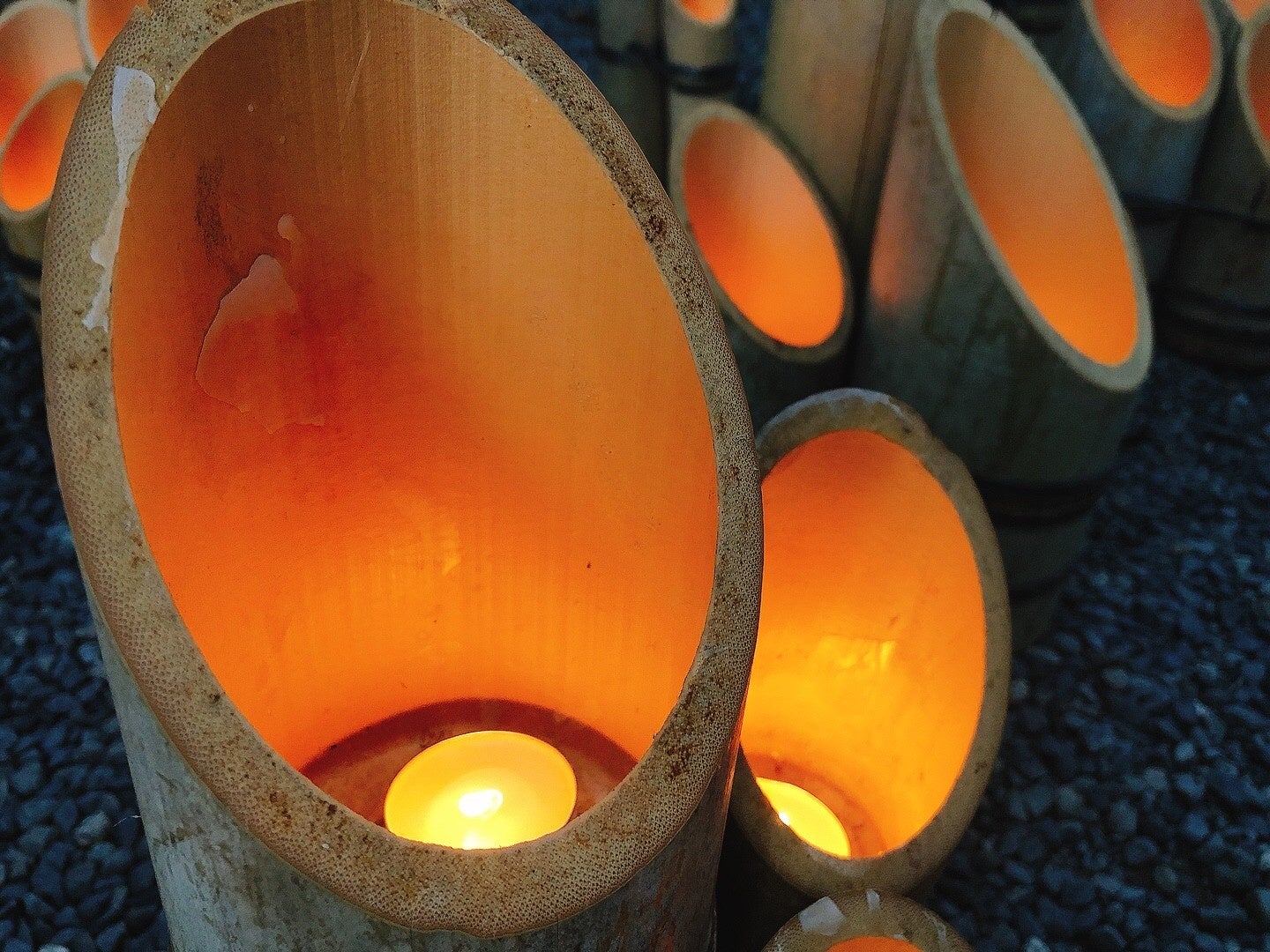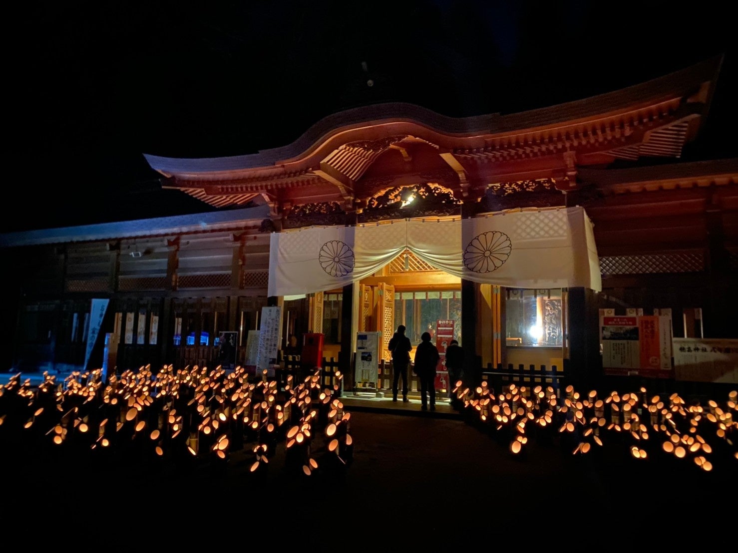 今年で14回目を迎える「安曇野神竹灯」は、穂高神社(長野県安曇野市穂高)で開催され、約10,000本もの竹灯籠が境内を照らす安曇野の冬の風物詩です。