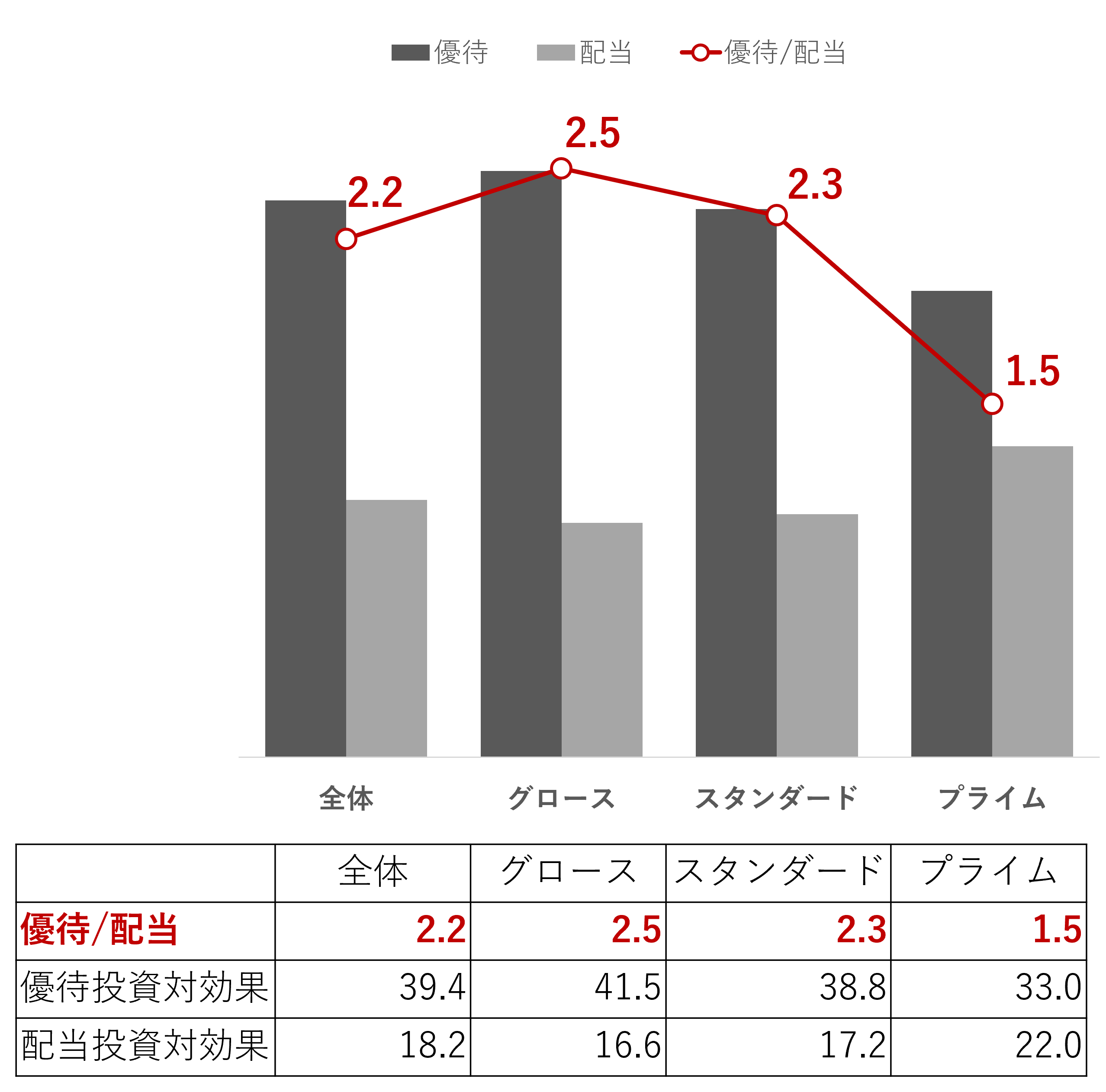 特にグロース・スタンダードといった時価総額500億円未満の企業が多い市場においては、優待の効果がより大きく表れています。
