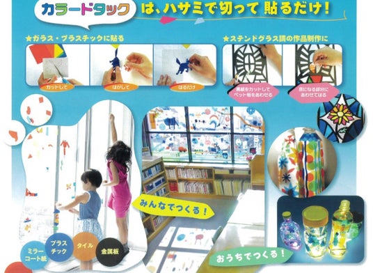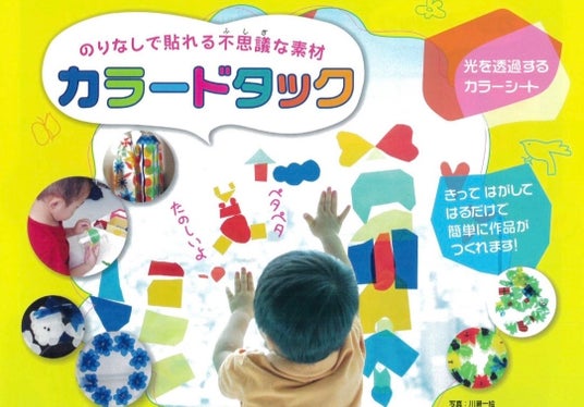 色とりどりのカードタックで形をつくり、びょういんの2階の窓を彩ります。