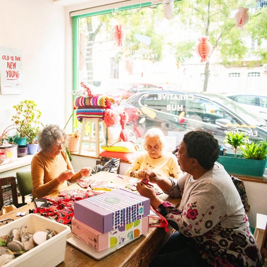 ポルトガル語で「おばあちゃんが働きに来た」という意味をもつこのプロジェクトは、スザナ・アントニオさん(デザイナー)とアンジェロ・カンポッタさん(心理学者)が、高齢者がクリエイティブな分野から取り残されている現状に疑問を抱いたことからスタート。数世代にわたる刺繍の伝統技術にデザイン性をプラスしたプロダクトを、リスボンのスタジオに集いおしゃべりをしながら日々制作しています。刺繍を通じて生まれる交流は、世代を超えた理解と共感を育み、コミュニティへの接続を生み出します。そのつながりの中で、高齢者は社会の中心に戻り、力強くエンパワーメントされていくのです。