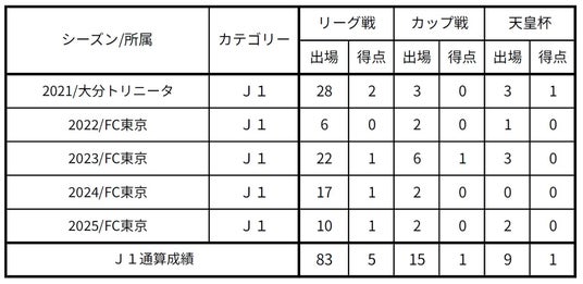 □出場記録(2025年12月5日時点/国内クラブ所属時のみ)
