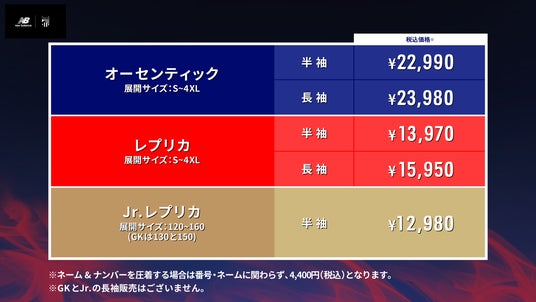 ※GKとJr.の長袖ユニフォームの販売はありません。