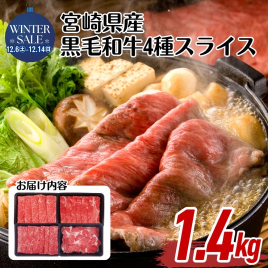 ★宮崎県産黒毛和牛4種スライス1.4kg贅沢に食べ比べ!