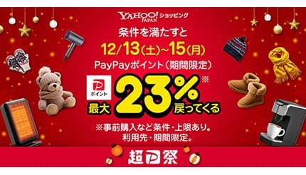 Yahoo!ショッピング、最大23%のPayPayポイントが戻ってくる「超PayPay祭」を12月15日まで開催中