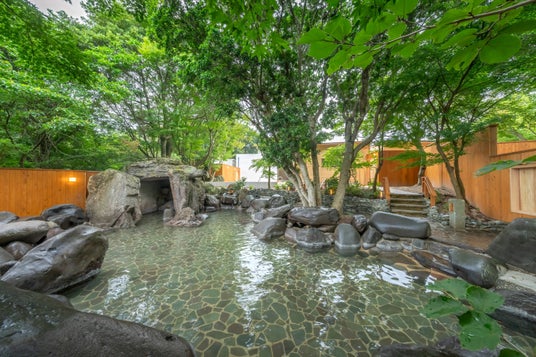 「雪佳の湯」側の露天風呂には風情ある岩風呂も。