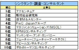 ◆シンクタンク・調査・コンサルタント業界ランキング