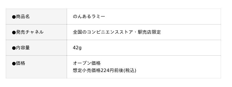 株式会社ロッテ(東京都新宿区、代表取締役社長執行役員:中島英樹、以下ロッテ)は、洋酒チョコレート市場売上No.1(※1)の「ラミー」発売60周年を記念し、「のんあるラミー」を全国のコンビニエンスストア・駅売店限定で12月16日(火)より発売します。昨今、社会的な健康志向の高まりを背景にノンアルコール飲料の市場規模は10年前と比較して約1.4倍となっている中で、ロッテの洋酒チョコレートとして長年愛されてきた「ラミー」ブランドより、ノンアルコール(※2)品質のラミーをご提案します。これまで「日中も食べたいがアルコールが入っているため控えていた」という既存のファンの方をはじめ、妊娠中の方や運転をされる方などにも、場所と時間を問わずラミーの味わいを楽しんでいただけるようになりました。また、年末年始の外出意向の高まりにおいて、本商品は持ち運びにも便利なパウチデザインを採用し、かつ一口サイズにしたことで持ち運びやすさと気軽に食べられる利便性を考慮しました。夜の自宅でのリラックスタイムなどに加え、これまでラミーを食べられなかった、日中の休憩時間や移動中などにもラミー気分を楽しんでいただける品質を目指しました。大人がときめく味わいをのんあるラミーでぜひご堪能ください。
