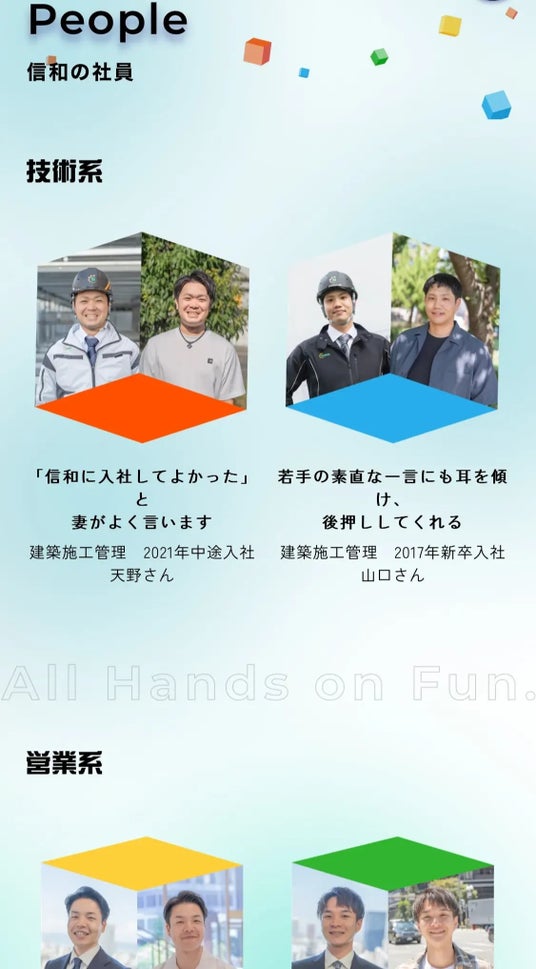 「今回のリニューアルには、信和グループが大切にしてきた理念や事業、福利厚生を、より多くの方に正しく伝えたいという想いがあります。多角事業を展開する当グループの魅力や働く環境をオープンにし、将来をともに創る新しい仲間との出会いを生み出すきっかけになればと考えています。」