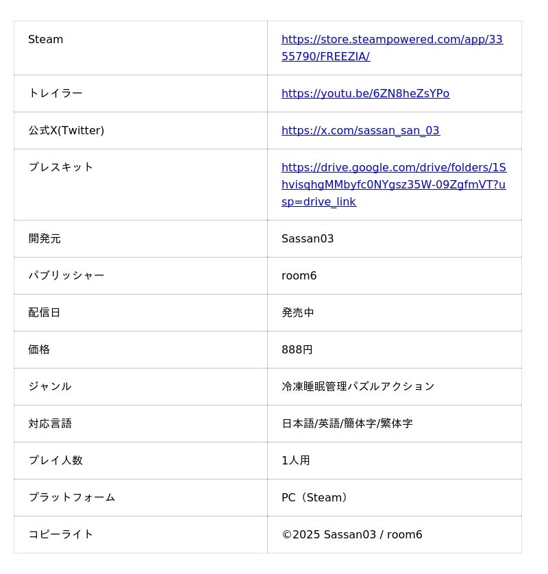 株式会社room6(本社:京都市左京区、代表取締役:木村征史、以下、room6)は、『FREEZIA』オリジナルサウンドトラックを本日Steamにて発売したことをお知らせします。