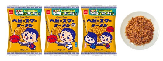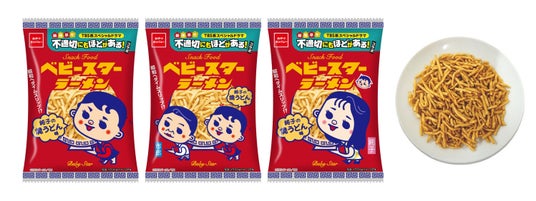 ベビースターの定番のチキン味に加え、ドラマ内で登場した「純子の焼うどん味」をイメージした味わいの2種類。パッケージには、初代ベビースターキャラクターとともに、ドラマの主人公・市郎と純子も登場!昭和レトロな雰囲気も楽しめるデザインに仕上げました。