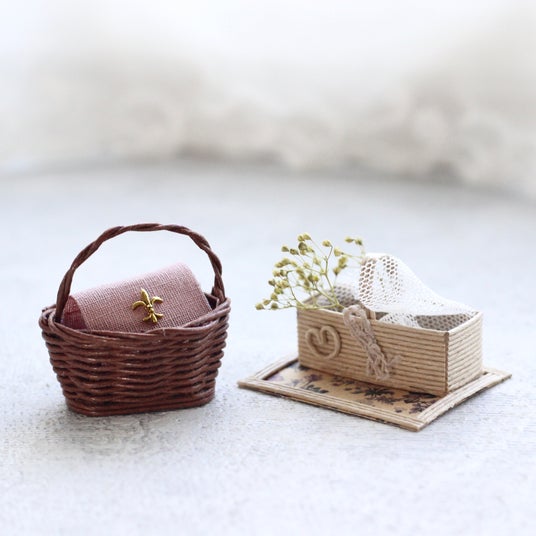 4. 紙バンドでつくるミニチュア~ミニバスケットとスクエアかご~