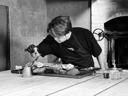 手島竜司シェフは、欧州にて精肉・熟成・火入れの技術を極め、パリ「Restaurant PAGES」でミシュラン一つ星として掲載された人物。HINOMORIのオーナーシェフでもあります。