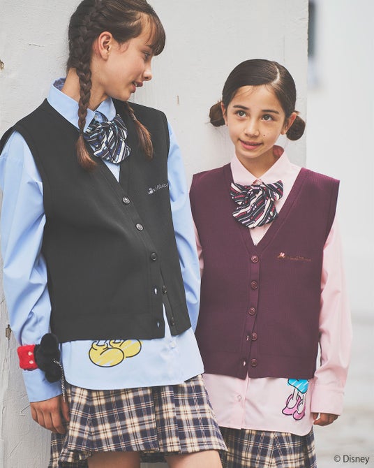 本コレクションは、スクール風のシャツ&ベストセットやリボンタイなど、きちんと感と遊び心を両立したアイテムと、色ごとに異なるキャラクターデザインをあしらったアソートデザイントレーナーを展開。日常のコーディネートからお出かけまで、さまざまなシーンで楽しめるラインナップです。