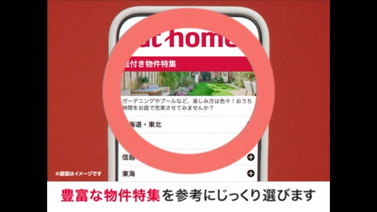 「不動産情報サイト アットホーム」1996年よりアットホームが運営している、マンション・アパート・一戸建てや店舗・事務所など、全国の豊富な物件が探せる不動産情報サイトです。単身・カップル・ファミリー向けの賃貸・売買物件から店舗・オフィス向けの事業用物件まで幅広く物件情報を取りそろえています。