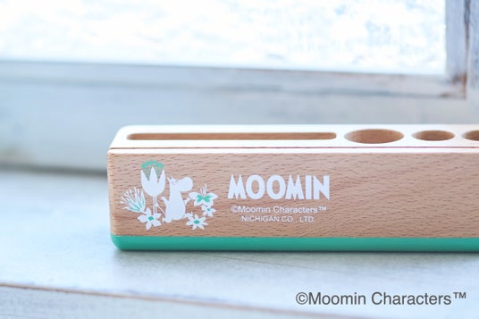 ❀かわいらしく便利に木のぬくもりにマッチしたムーミンのイラストが描かれたかわいらしいデスクスタンド。スマホ、印鑑、ペンが入ります。手前の溝にメモを入れることが出来ます。