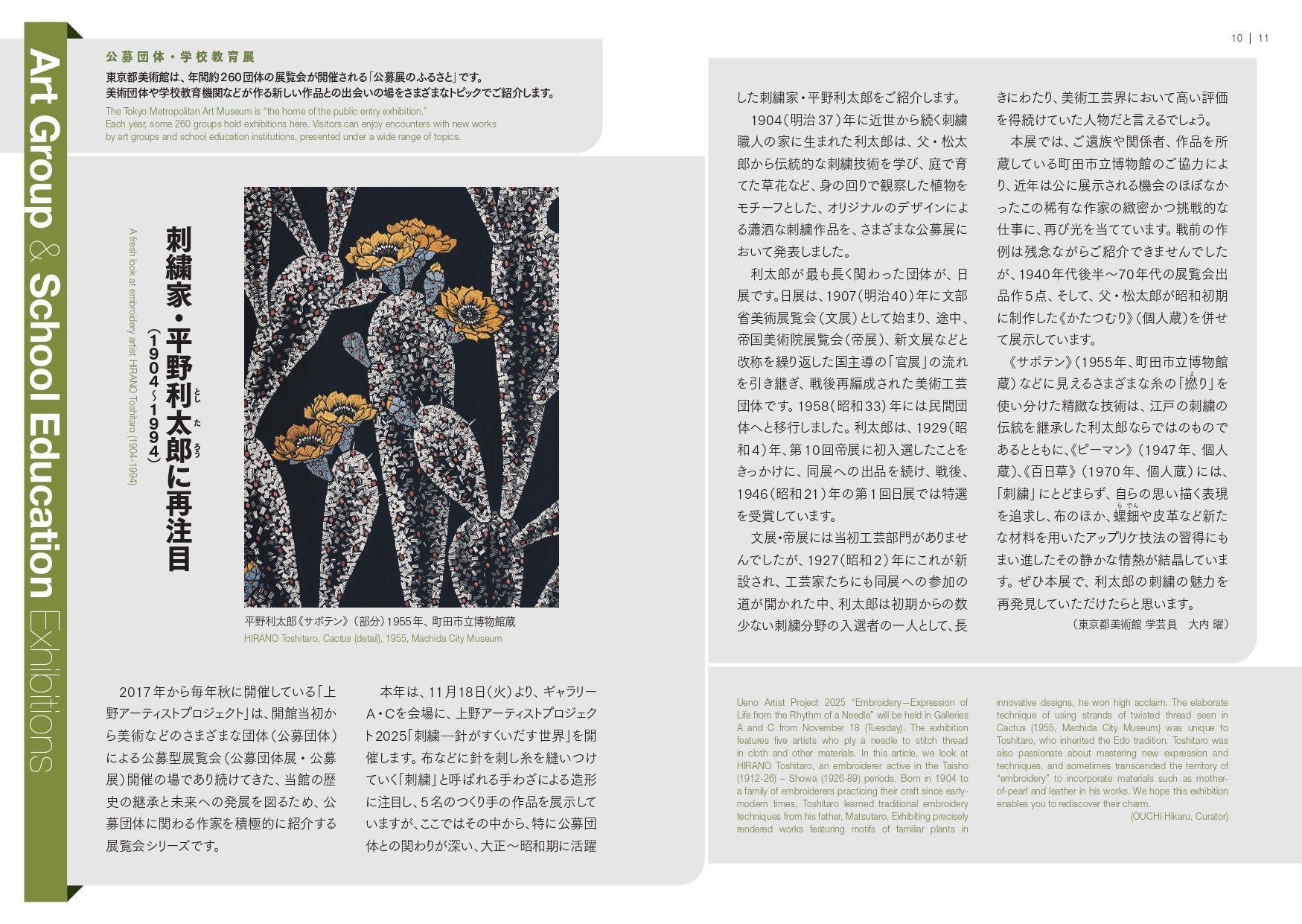 “公募団体・学校教育展”のページでは、公募団体に関わる作家を積極的に紹介する展覧会シリーズ、上野アーティストプロジェクトから「刺繍―針がすくいだす世界」をご紹介。本展は、東京都美術館ギャラリーA、Cを会場に2026年1月8日まで開催中です。