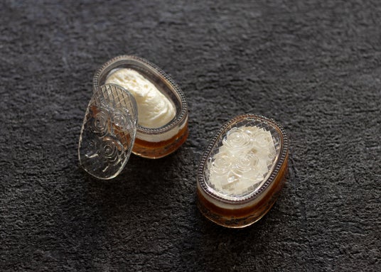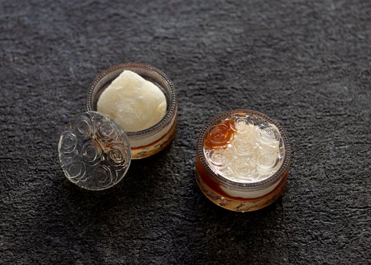 「光を味わう」というをコンセプトとした造形様式と、優美な薔薇の文様を統合。透明感のある琥珀羹(水晶)の中に、深く煮込んだキャラメルと、濃厚なバター練り物を封じ込めた水晶酪菓(すいしょうらくか)です。