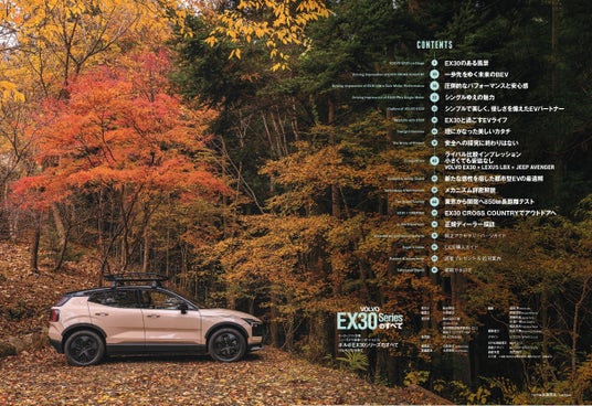 ドライビングインプレッションは全部で3本。アウトドアテイストを盛り込んだ、EX30クロスカントリーに、前後2モーターを積みEX30で最もスポーティなウルトラ・ツインモーター・パフォーマンス。そして最も手頃なプラス・シングルモーター。それぞれの乗り味の違いをお届けします。